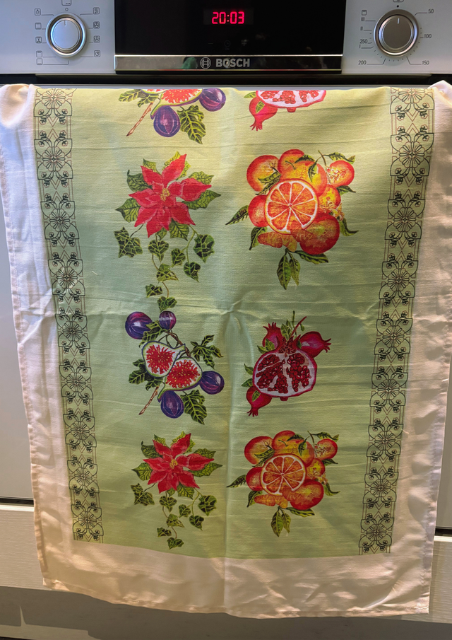 Introducing our stunning 100% linen tea towel featuring beautifully illustrated oranges, figs, pomegranates, and poinsettias - perfect for the holidays! This unique kitchen accessory adds a touch of botanical charm with its intricate floral design and bright, vibrant colours. Ideal for use when entertaining guests or for daily use, this tea towel is both stylish and functional. The Citrus and berry motif brings a touch of nature to your home, while the high-quality linen material ensures durability and longevity. Upgrade your kitchen decor with this beautiful fruit-themed tea towel that blends seamlessly with any decor!